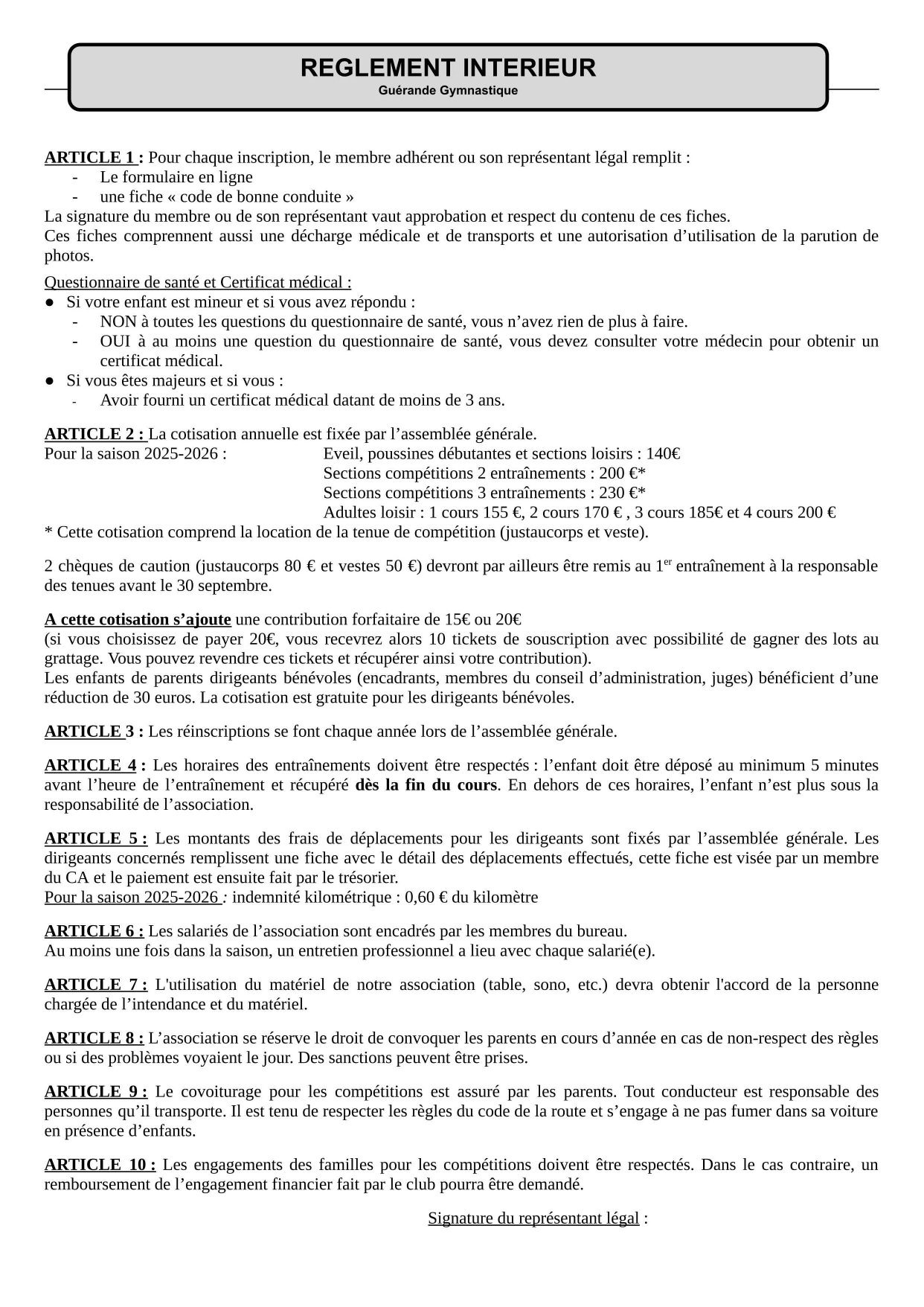 Pour toute adhésion, merci de prendre connaissance de notre réglement et de notre c...