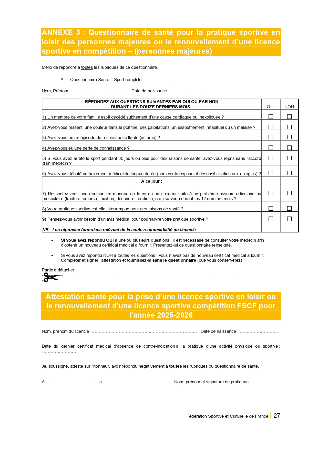 Ce questionnaire est obligatoire pour tous les adhérants jusqu'à leur majorit&eacut...